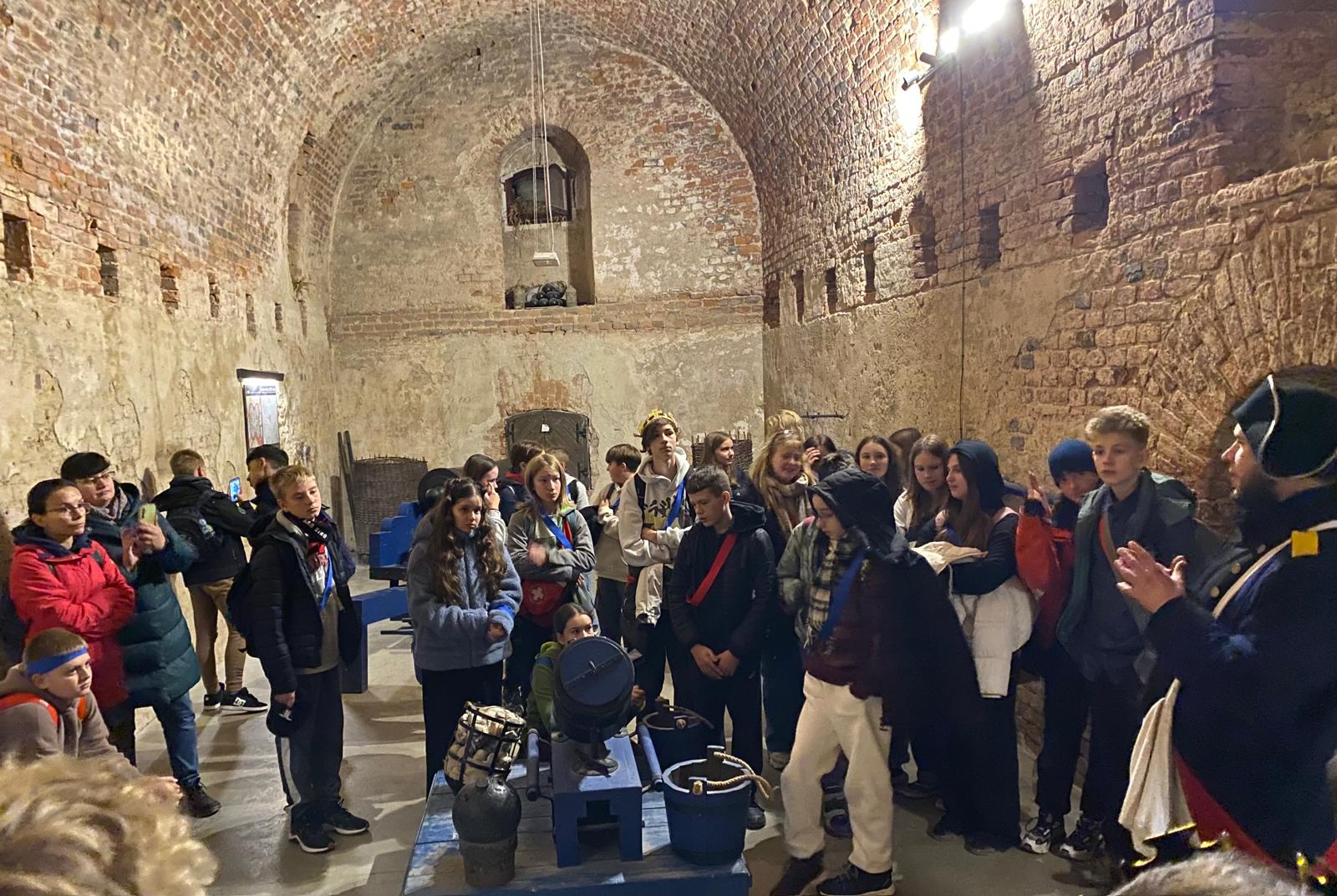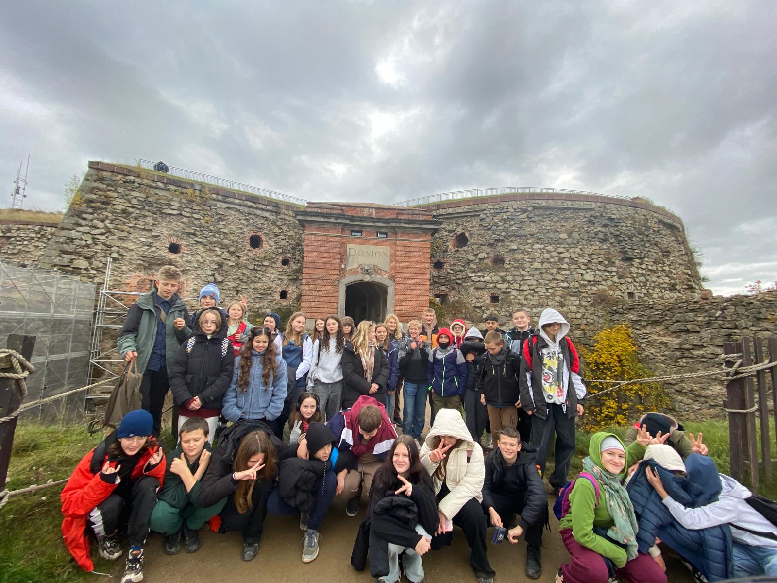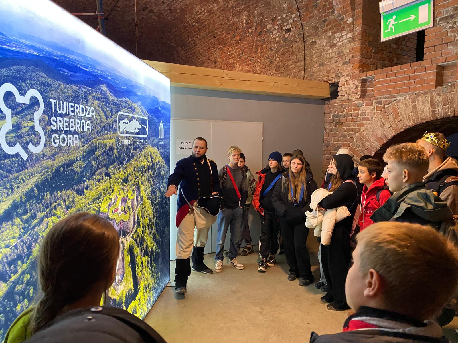 17.października 2025r. klasy 7a I 7b wraz z przedstawicielami klasy 6 wybrały się do Twierdzy w Srebrnej Górze. Uczniowie spędzili w Twierdzy kilka godzin, które bardzo szybko minęły na: udziale w Grze Fortecznej oraz zwiedzaniu Twierdzy. Podczas gry terenowej była okazja do wykazania się w zadaniach logicznych, dotyczących wiedzy historycznej oraz zręcznościowych. Uczniowie poznali podstawy musztry oraz wzięli udział w pokazach działania broni palnej oraz wystrzałów armatnich. Nie zabrakło również czasu na ” tradycyjne” zwiedzanie Twierdzy z przewodnikiem, podczas którego padło wiele ciekawych pytań dotyczących historii twierdzy. Na koniec obie klasy zjadły ciepły posiłek, który był także dobrą okazją do integracji. Wyjazd został dofinansowany ze środków budżetu Samorządu Województwa Dolnośląskiego w ramach projektu „Poznaj Dolny Śląsk „.